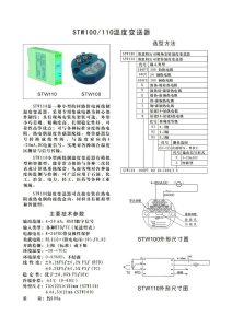 STW110是一种小型的回路供电两线制温度变送器,采用专用集成电路为核心部件制作;具有现场安装及架装可选、外形小巧美观、精确度高、长期稳定性好、可靠性高等优点;可与各种标准分度的热电阻、热电偶温度传感器配接,将传感器信号转换成线性的、与温度对应的4~20mA.DC电流信号,实现对各种场合温度区测最与信号传输。